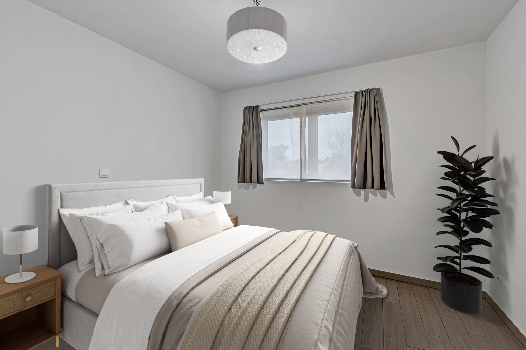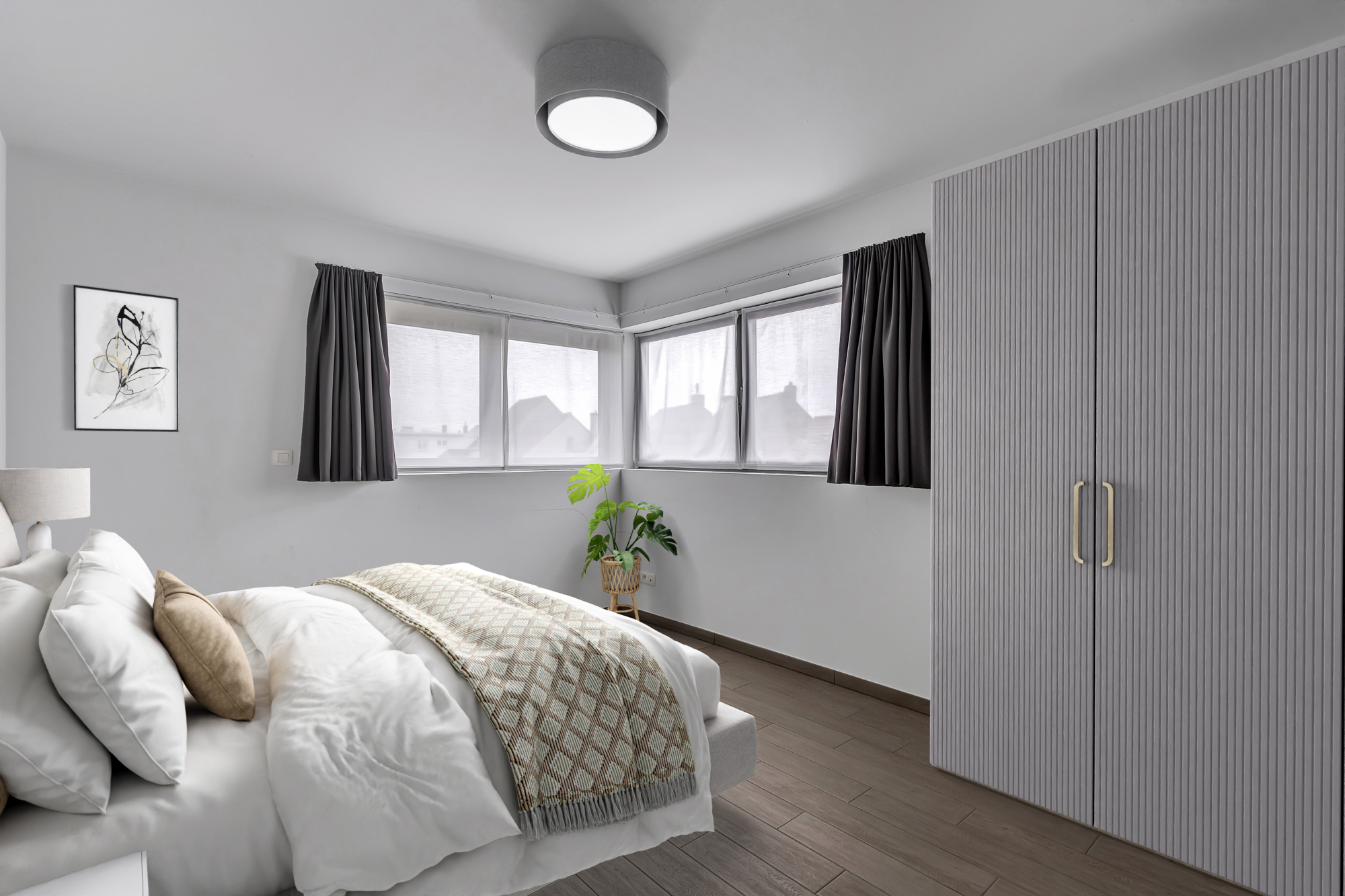 Op het gelijkvloers vind je een ruime hal met achteraan een slaapkamer/bureel en links ervan een grote wasberging.