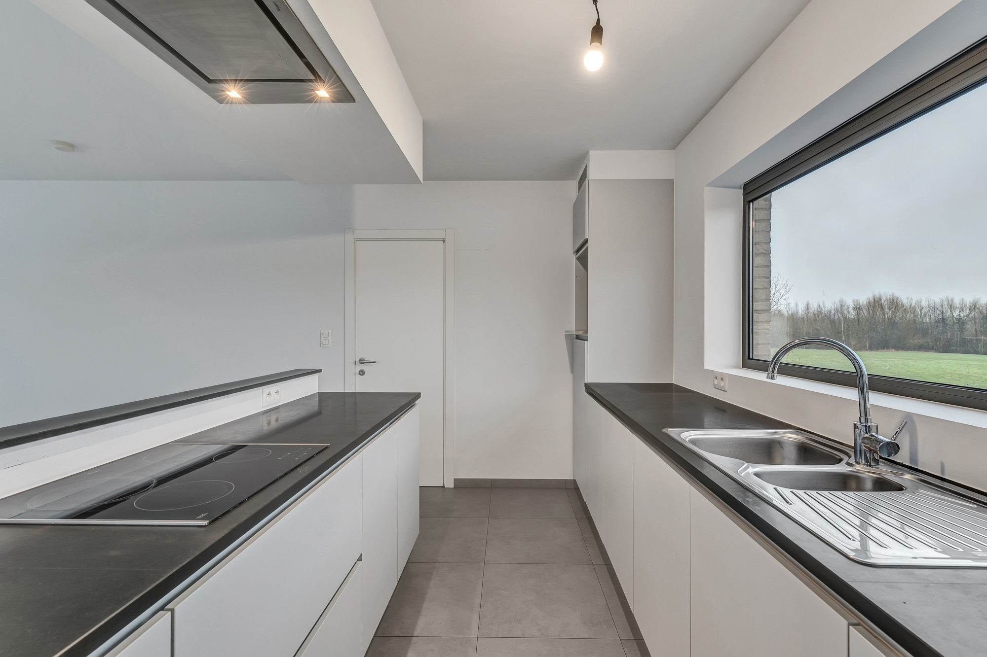 Dit huis beschikt over een eigen carport en een afgesloten tuin met zicht op de weilanden.