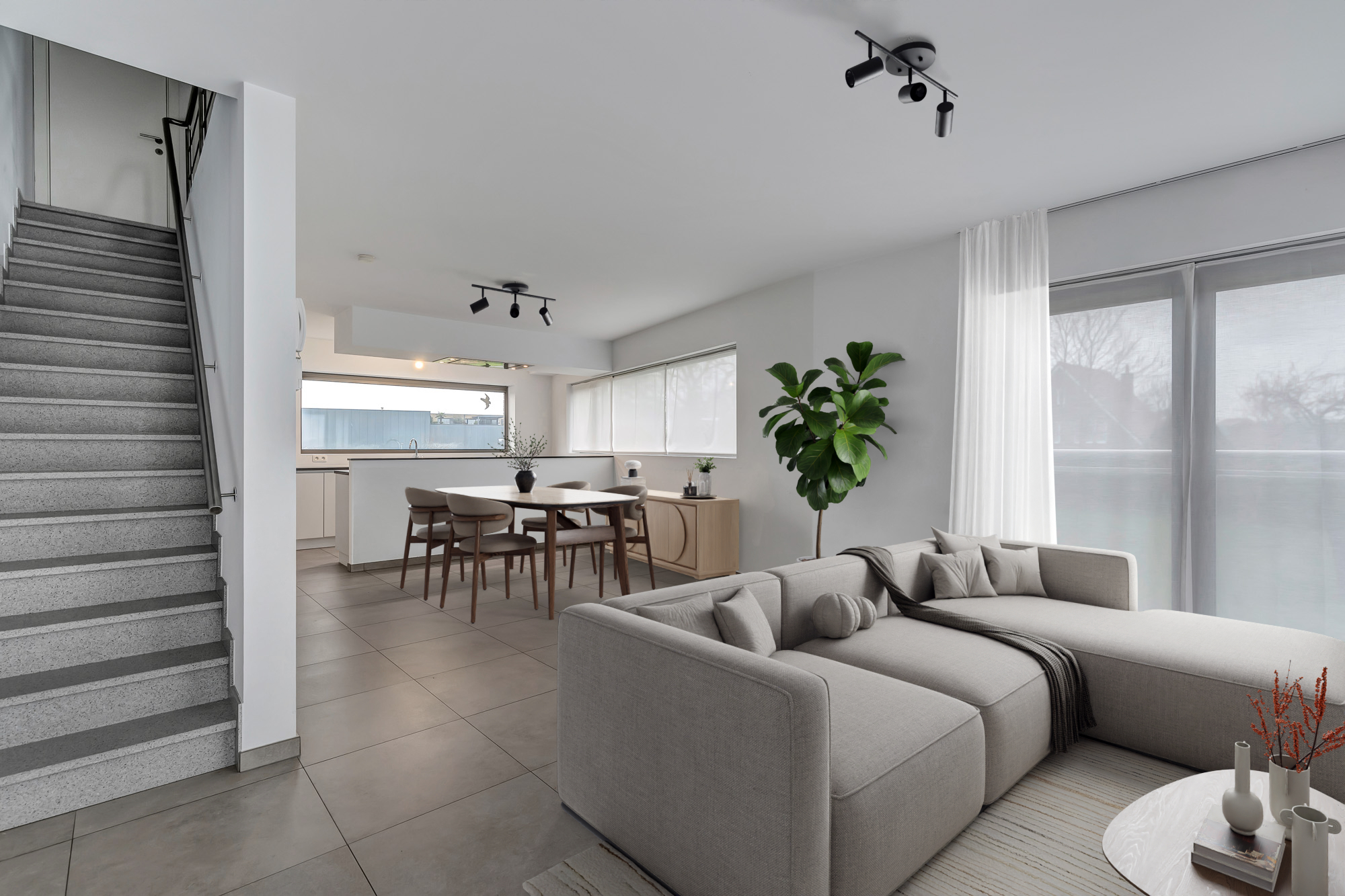 Dit huis is ruim, bijzonder licht en voorzien van veel raampartijen.
